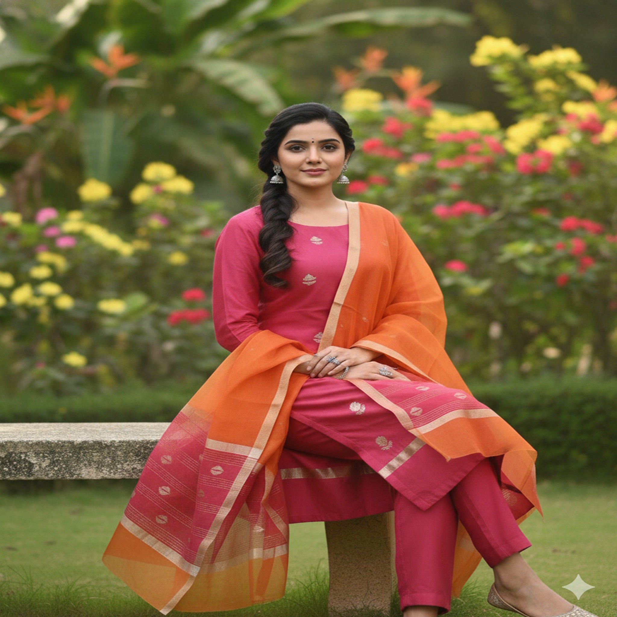 πΈ Chanderi Silk Suit Dress β Grace in Every Thread Step into...