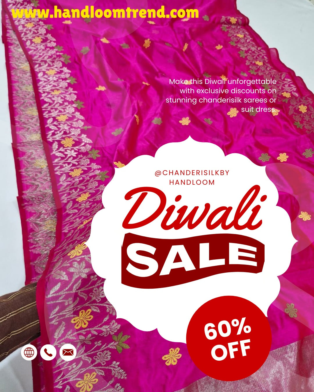 Celebrate the season of elegance with HandloomTrendβs exclusive Diwali offers. Discover pure Chanderi silk sarees and suit sets at up to 60% off β direct from weavers, wrapped in tradition and style. Limited time only!