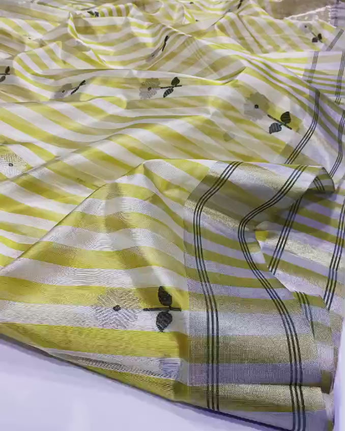 - Care: Dry clean only to preserve the delicate weave and natural luster. Store in a cool, dry place wrapped in a muslin cloth. Avoid direct sunlight and perfume contact to maintain fabric longevity.