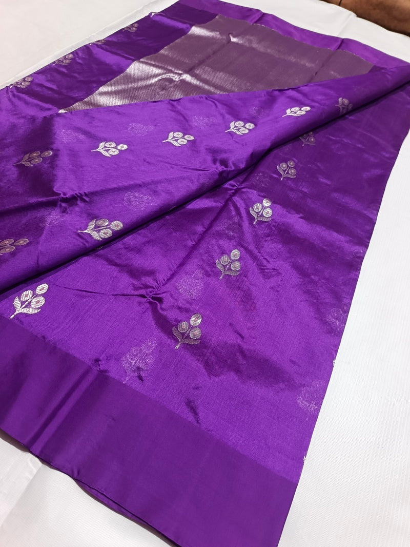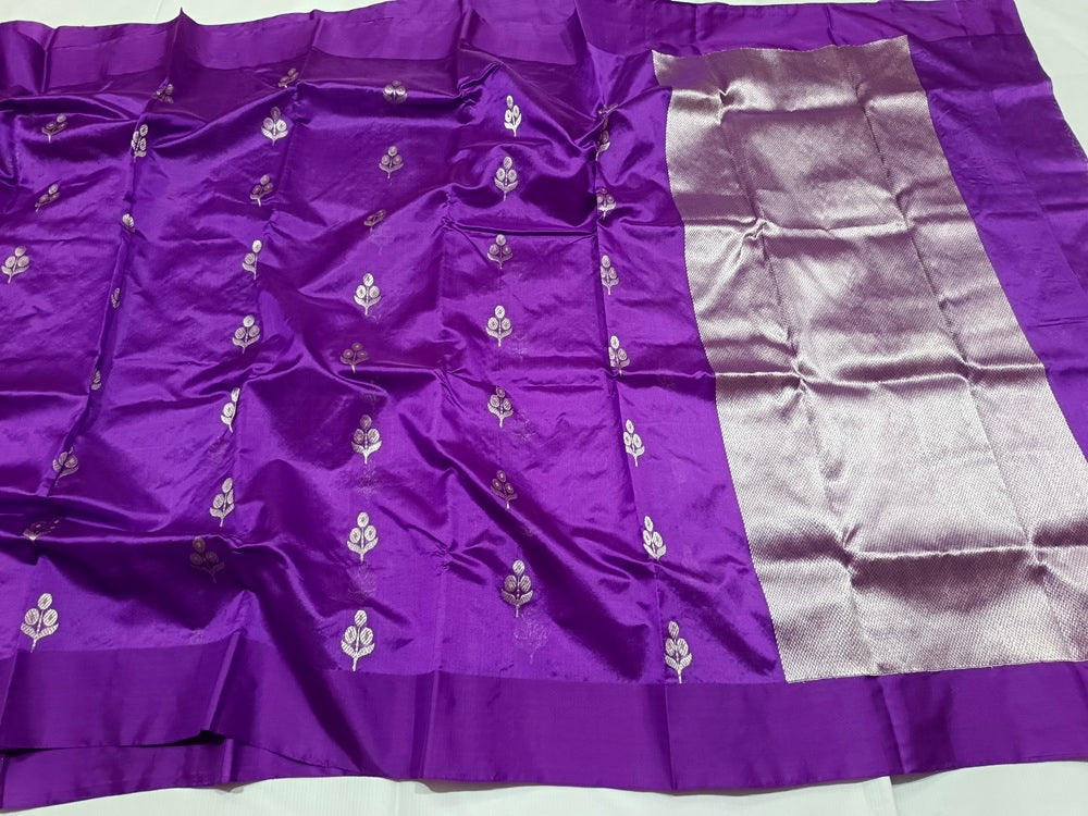 Discover refined elegance with this Designer Chanderi Pure Pattu Silk Saree, a timeless drape that blends traditional artistry with contemporary sophistication. Crafted from luxurious pure pattu silk, the saree features an all-over Minakari flower Butta design, delicately woven to reflect floral grace and heritage charm.