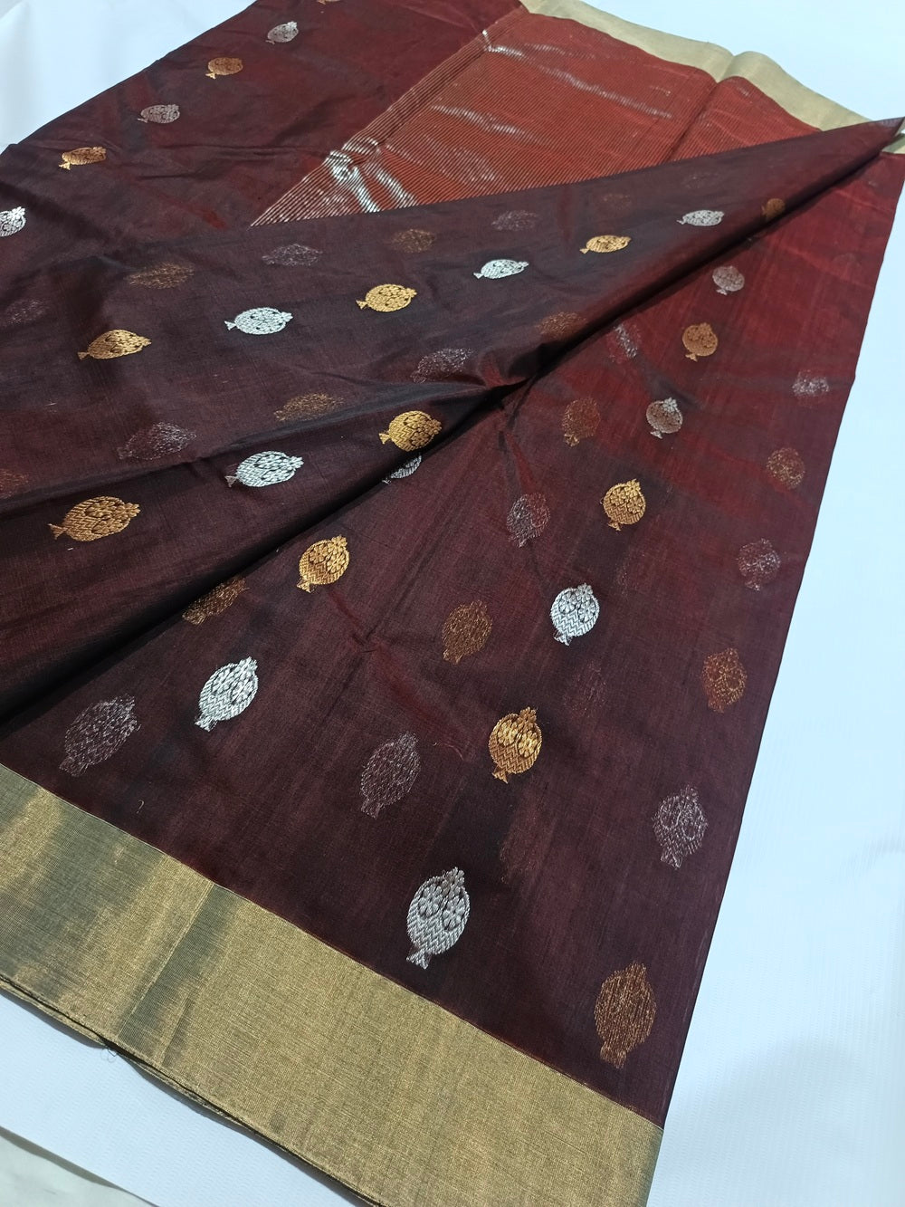 This saree blends the breathability of cotton with the sheen of pure silk, making it a perfect choice for festive charm and everyday elegance.