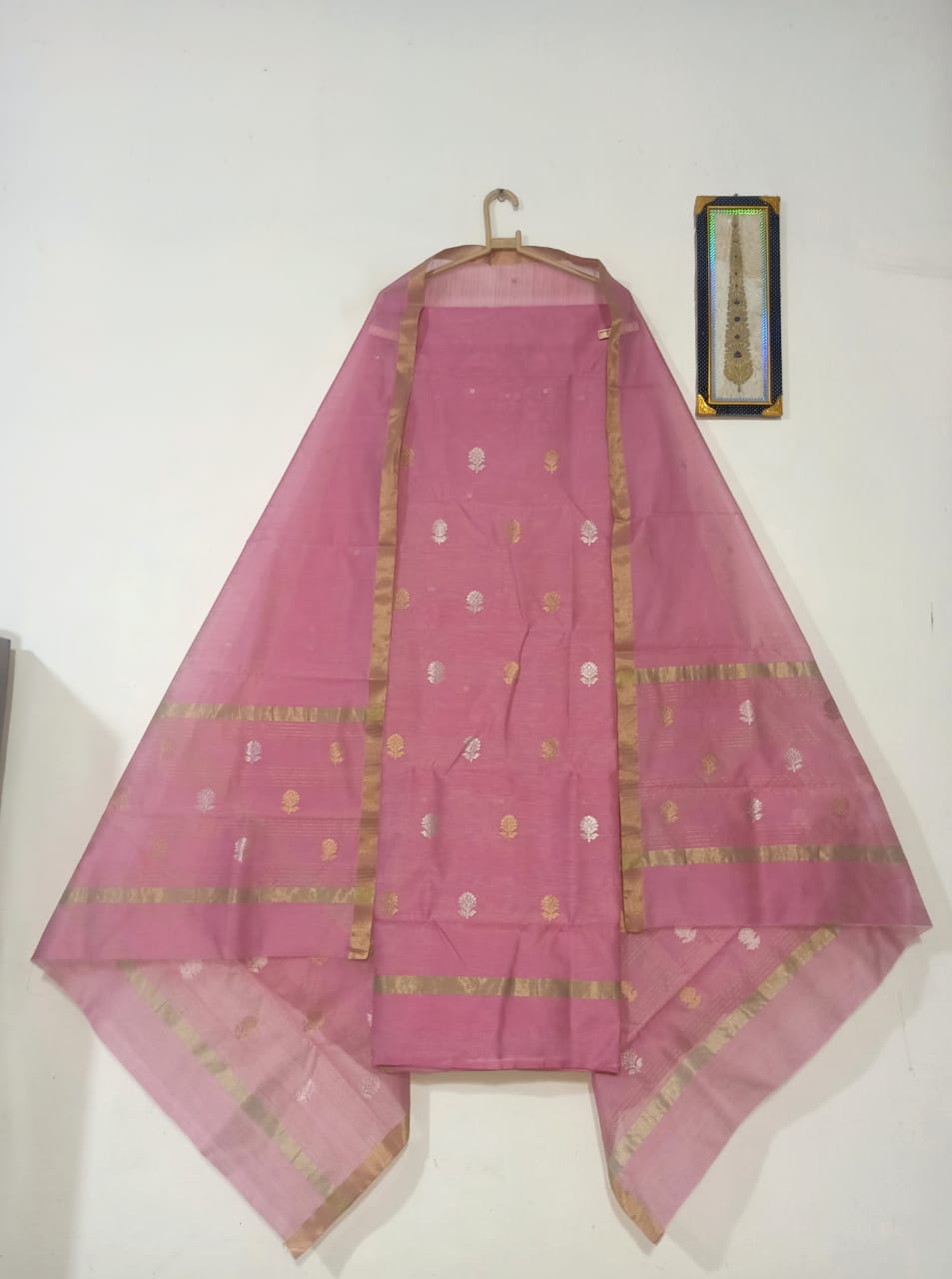 elebrate timeless craftsmanship with this luxurious Chanderi Silk Suit Dress, woven from pure silk by cotton for a soft, breathable feel. Featuring Flower-design mini butti motifs, rich zari shimmer, and a vibrant multi-color palette, it’s perfect for festive occasions and elegant daywear.