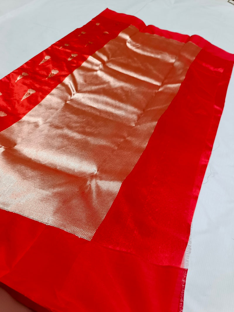 This saree comes with a plain running blouse piece in the same color, seamlessly attached for convenience and styling versatility. Ideal for weddings, festive occasions, and cultural celebrations, it offers both comfort and grandeur in every fold.