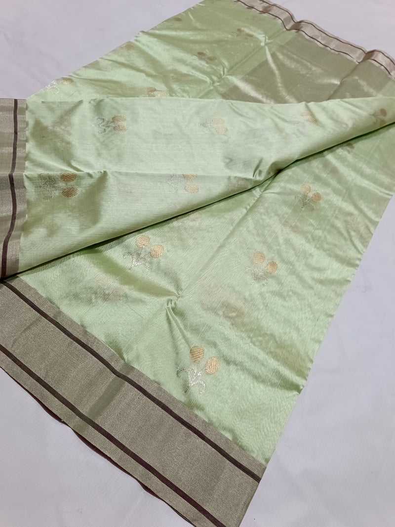 A timeless tribute to heritage artistry, this exquisite Chanderi saree is crafted from 6-pipeline pure Pattu silk, offering a luxurious drape with a soft, lustrous finish.