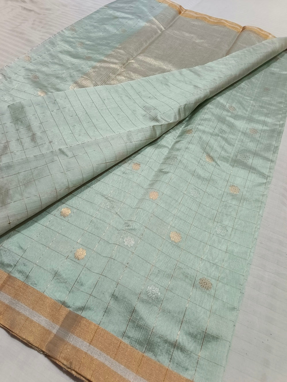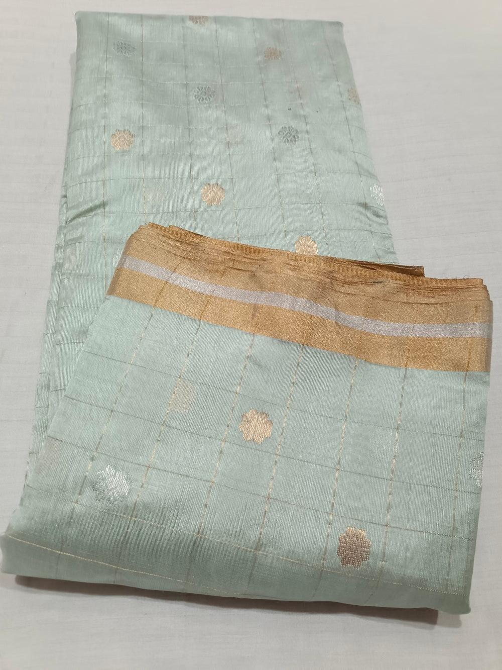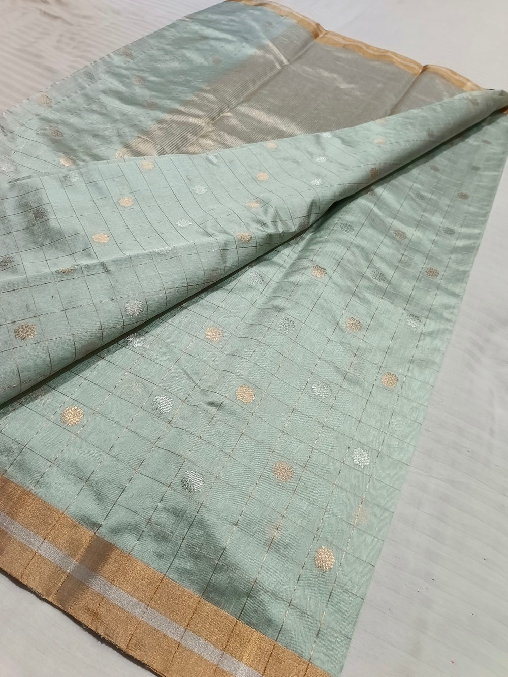 Discover refined elegance with this Designer Chanderi Pure Pattu Silk Saree, a timeless drape that blends traditional artistry with contemporary sophistication. Crafted from luxurious pure pattu silk, the saree features an all-over Check and Minakari flower Butta design, delicately woven to reflect floral grace and heritage charm.