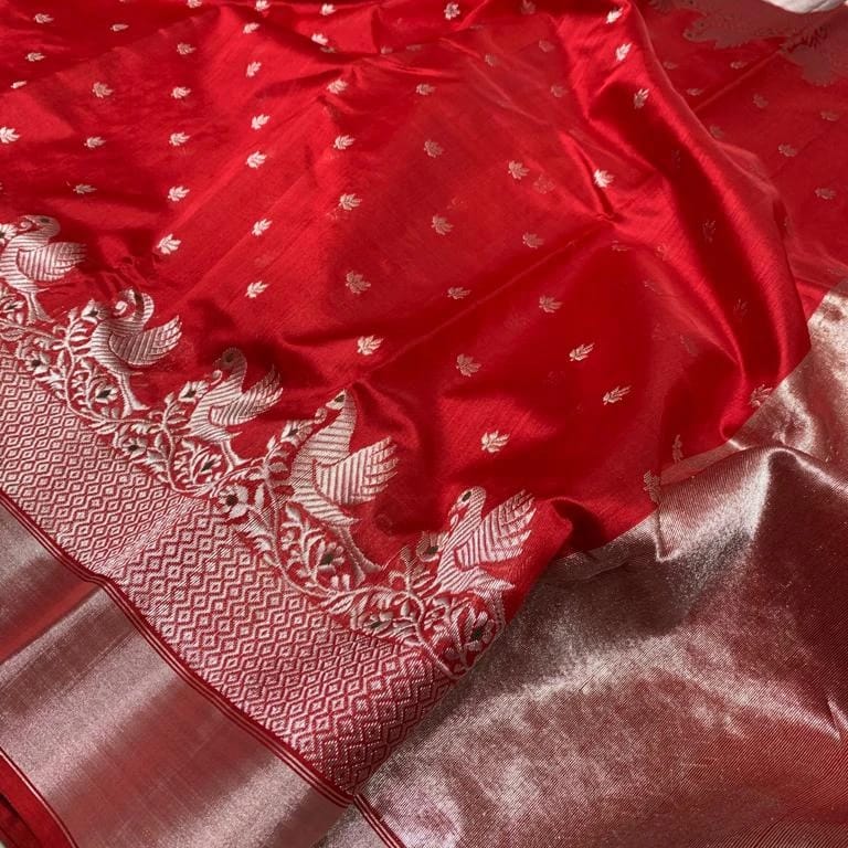 - πͺ‘ Border: Silver weaving design on silk β refined craftsmanship
