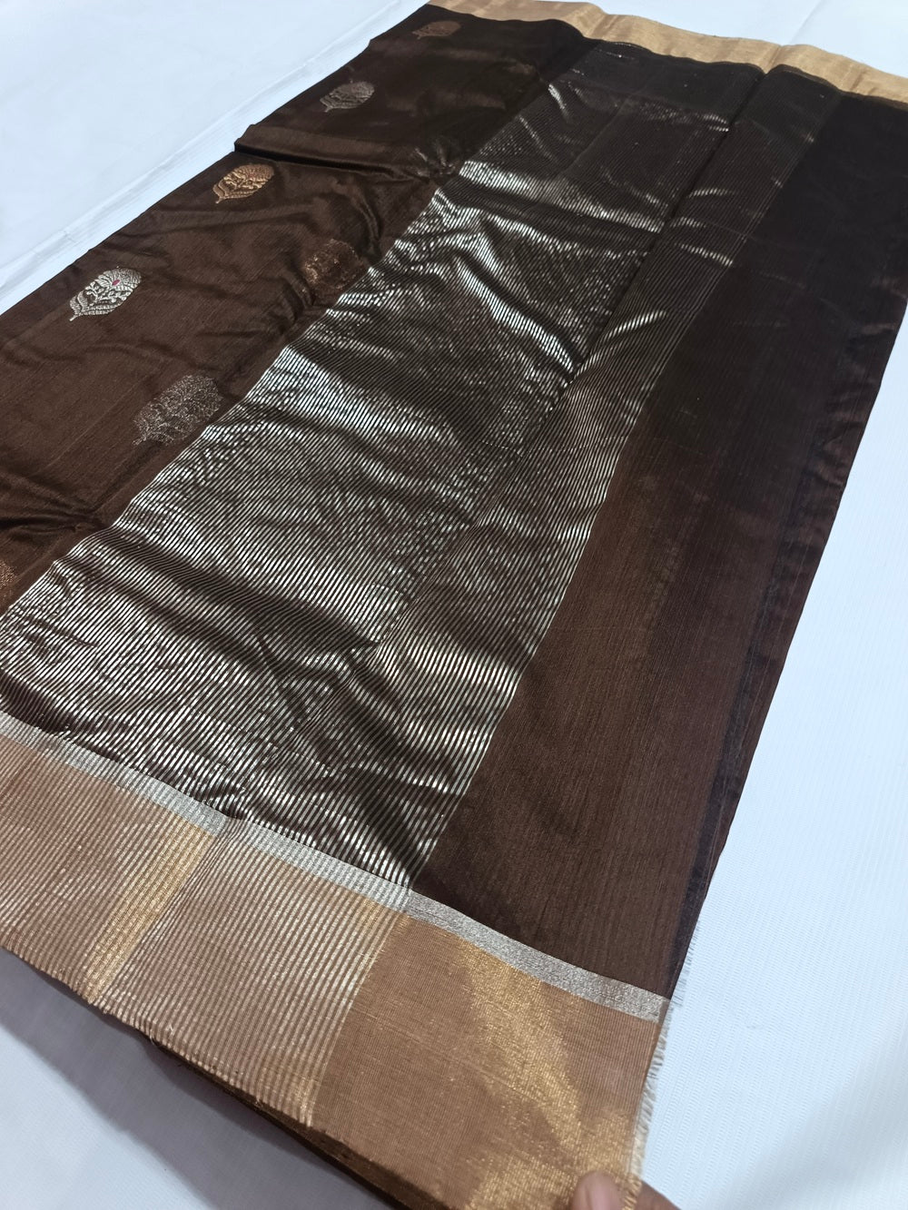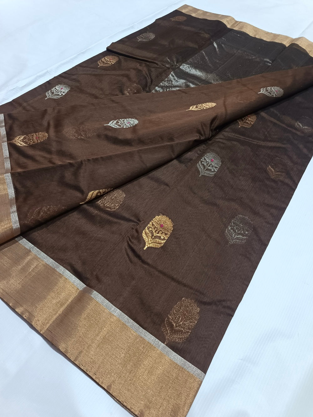 This saree blends the breathability of cotton with the sheen of pure silk, making it a perfect choice for festive charm and everyday elegance.