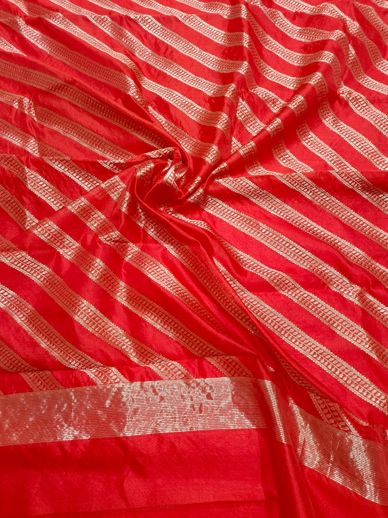The body is adorned with shimmering silver zari work, adding a soft, luminous touch to the fabric. A distinctive Silver zari border lends a rich contrast and textural depth, while the specific designer lehariya weaving pallu completes the ensemble with classic finesse.