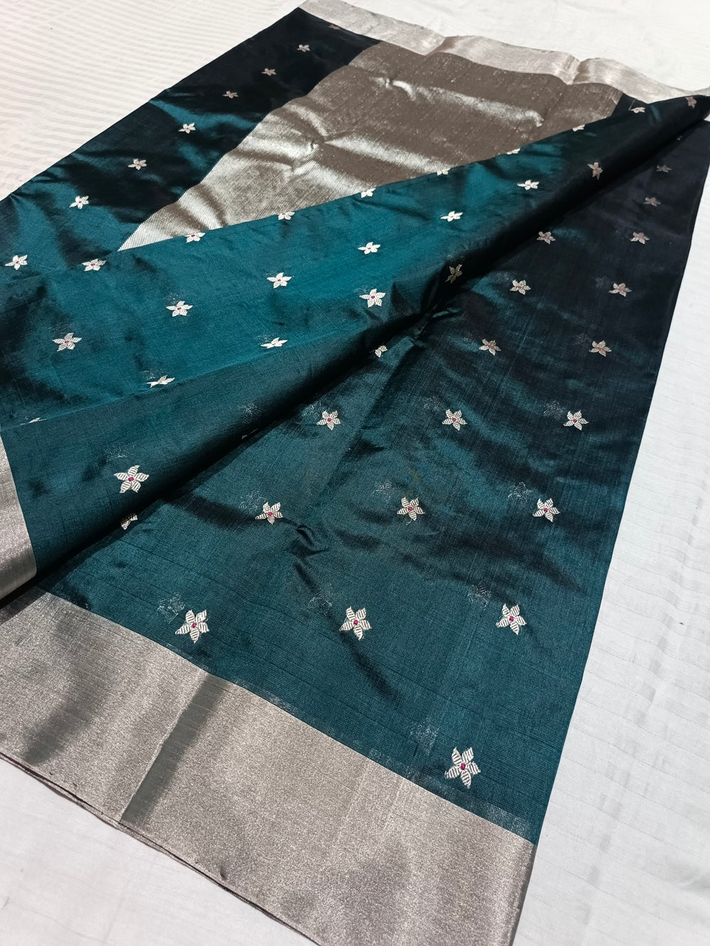 - 🌙 Fabric: 6-pipeline pure pattu silk – luxurious, structured, and radiant